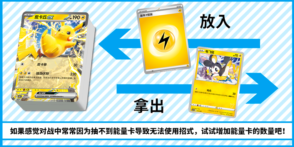 • 放入宝可梦使用招式所需要的能量卡吧!