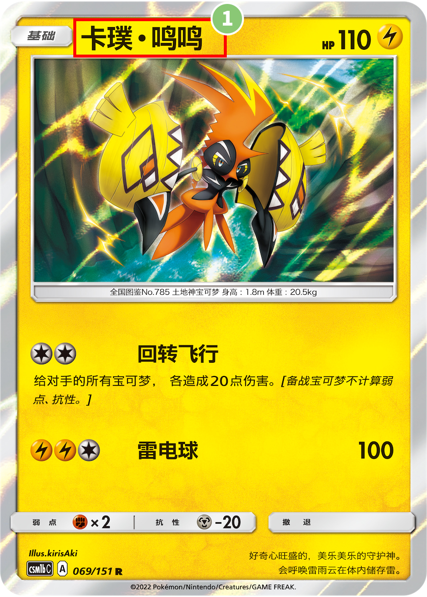 ”与“卡璞・鸣鸣”互为不同卡牌名的宝可梦。